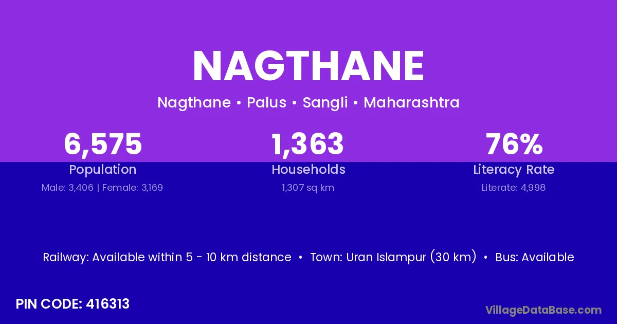 Uran Islampur (30 km) is the nearest town to Nagthane village for major economic activities and is located approximately 30 km away.