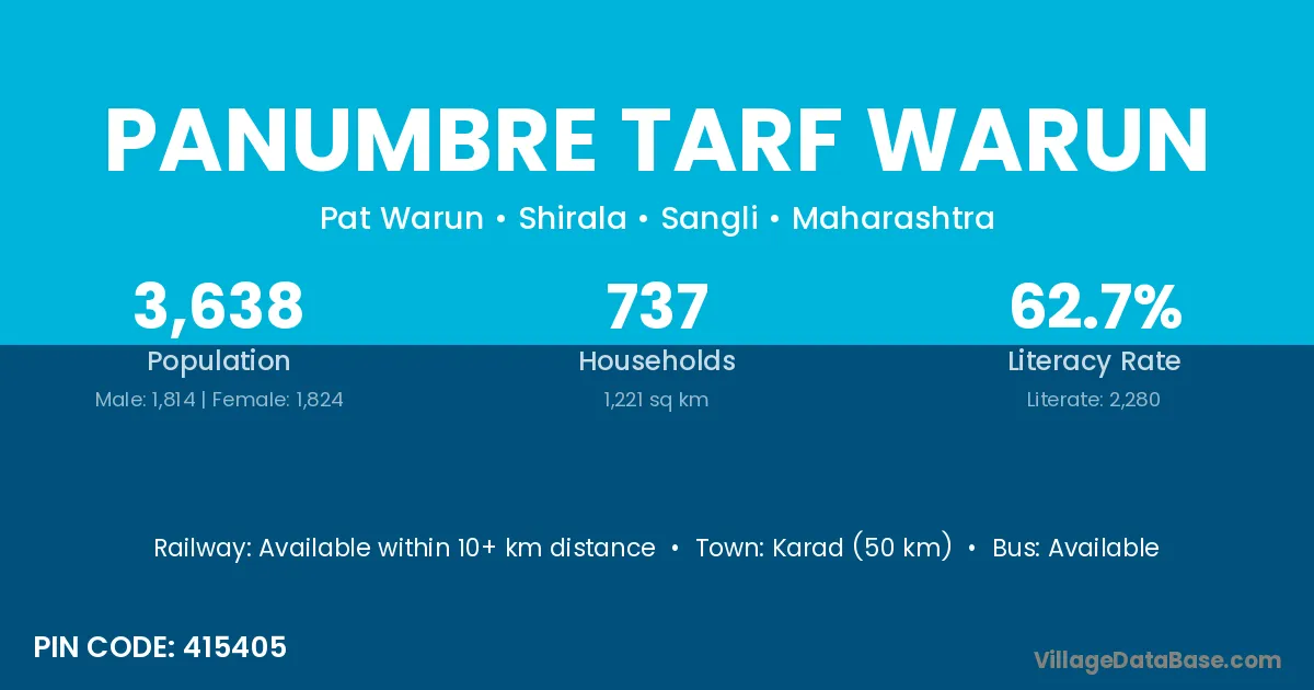 Karad (50 km) is the nearest town to Panumbre Tarf Warun village for major economic activities and is located approximately 50 km away.