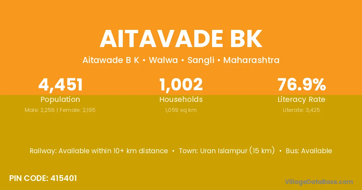 Uran Islampur (15 km) is the nearest town to Aitavade Bk village for major economic activities and is located approximately 15 km away.