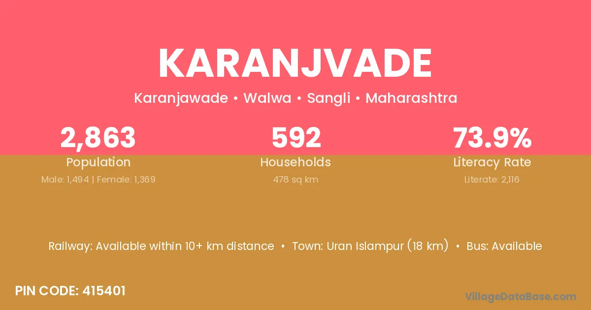 Uran Islampur (18 km) is the nearest town to Karanjvade village for major economic activities and is located approximately 18 km away.