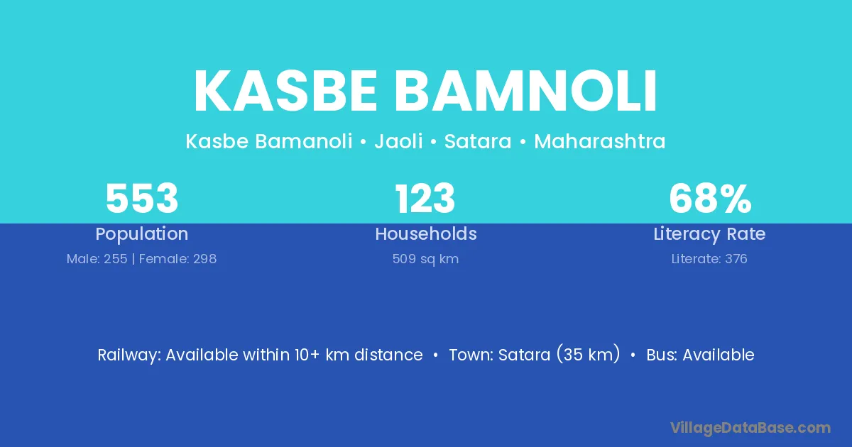 Satara (35 km) is the nearest town to Kasbe Bamnoli village for major economic activities and is located approximately 35 km away.