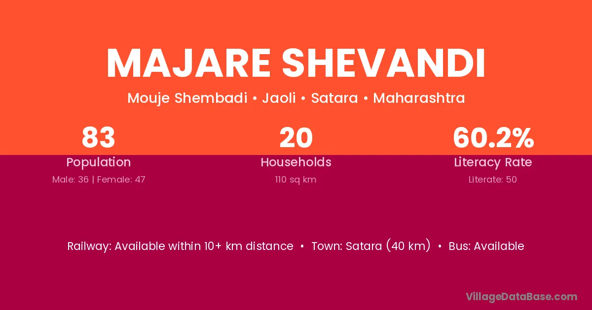 Satara (40 km) is the nearest town to Majare Shevandi village for major economic activities and is located approximately 40 km away.