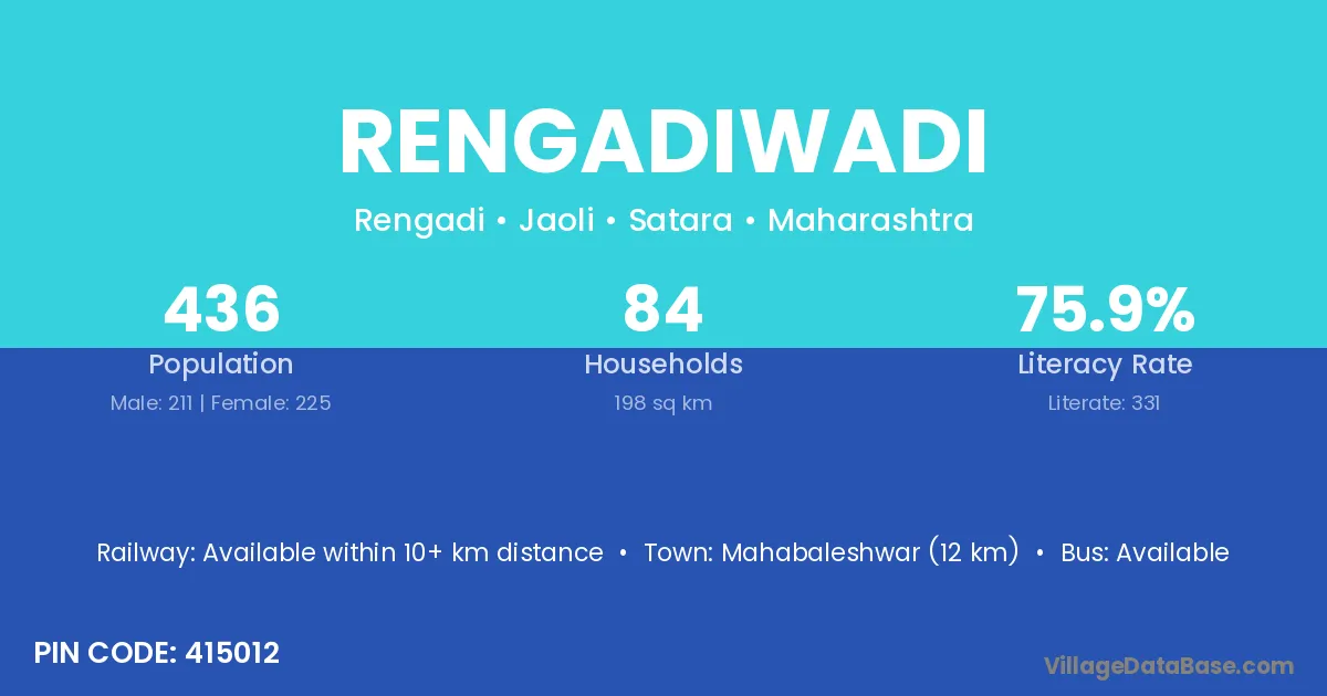 Mahabaleshwar (12 km) is the nearest town to Rengadiwadi village for major economic activities and is located approximately 12 km away.