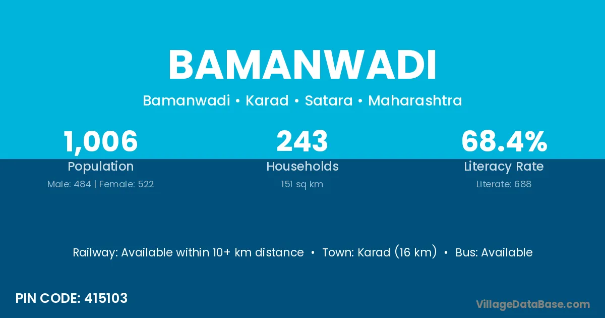 Karad (16 km) is the nearest town to Bamanwadi village for major economic activities and is located approximately 16 km away.