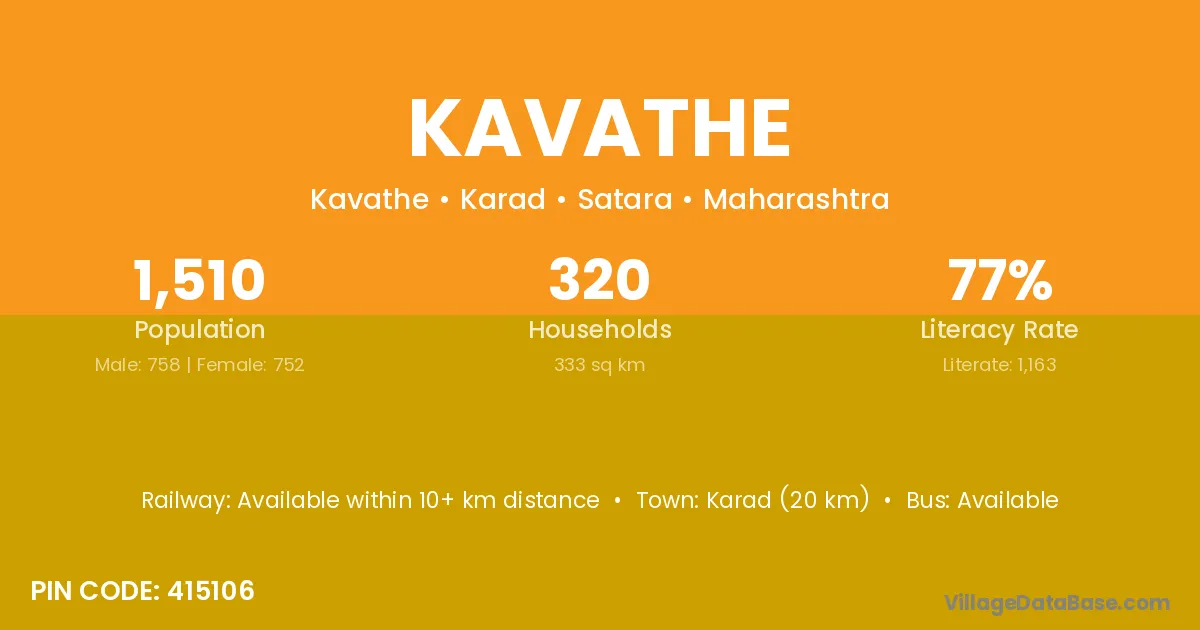 Karad (20 km) is the nearest town to Kavathe village for major economic activities and is located approximately 20 km away.