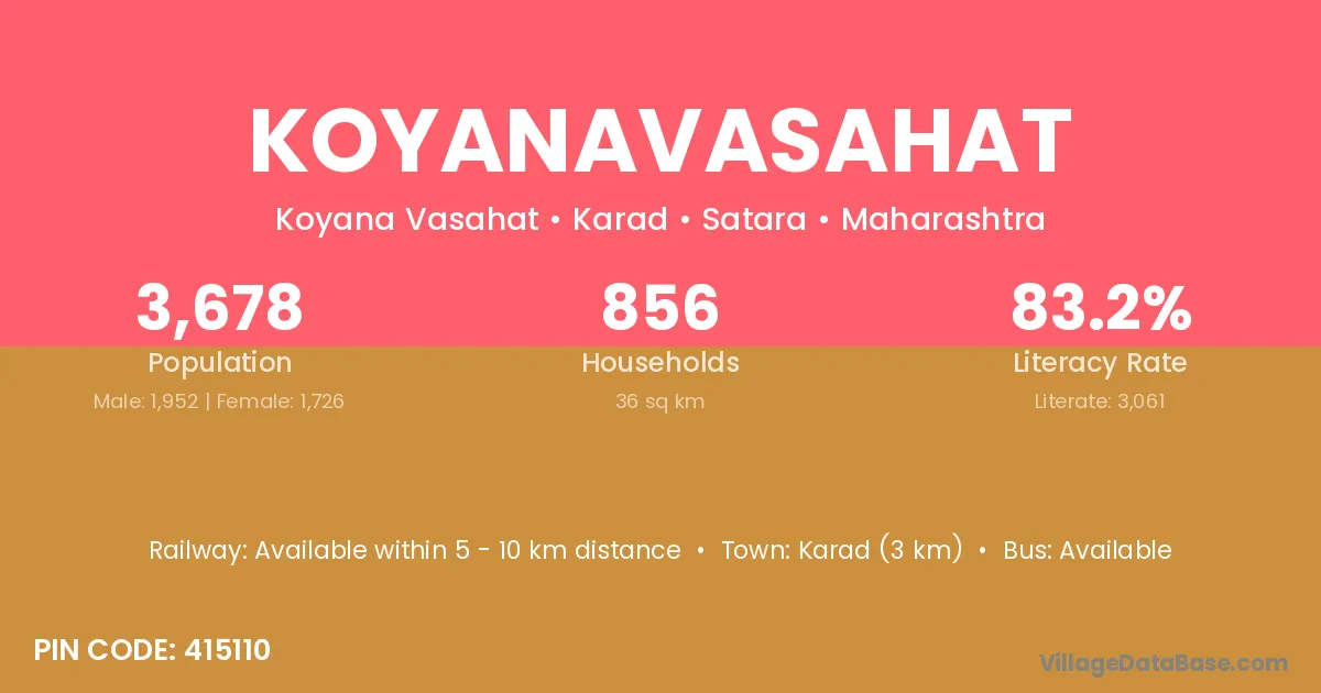 Karad (3 km) is the nearest town to Koyanavasahat village for major economic activities and is located approximately 3 km away.