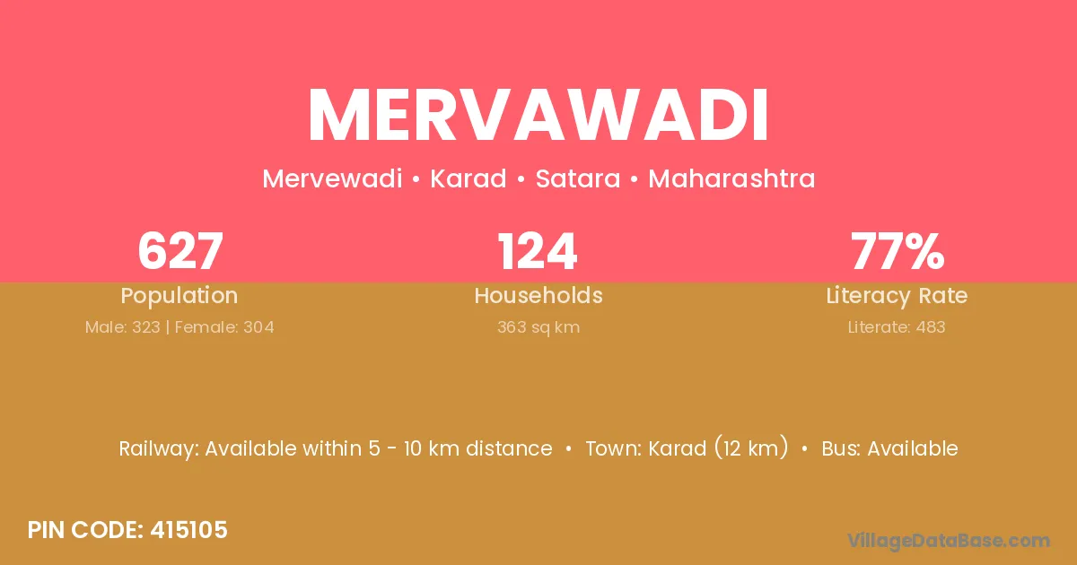 Karad (12 km) is the nearest town to Mervawadi village for major economic activities and is located approximately 12 km away.
