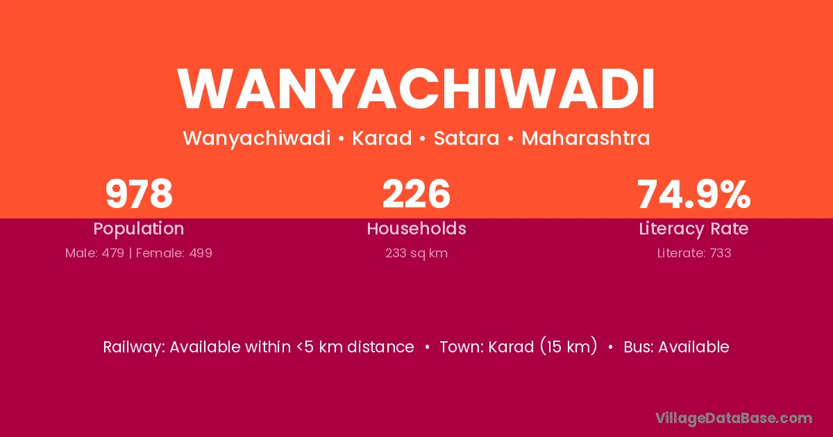 Wanyachiwadi village has a total population of 978 people, of which 479 are males and 499 are females.