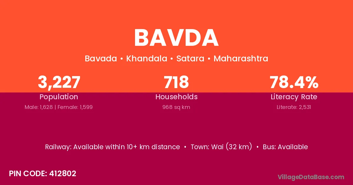 Wai (32 km) is the nearest town to Bavda village for major economic activities and is located approximately 32 km away.