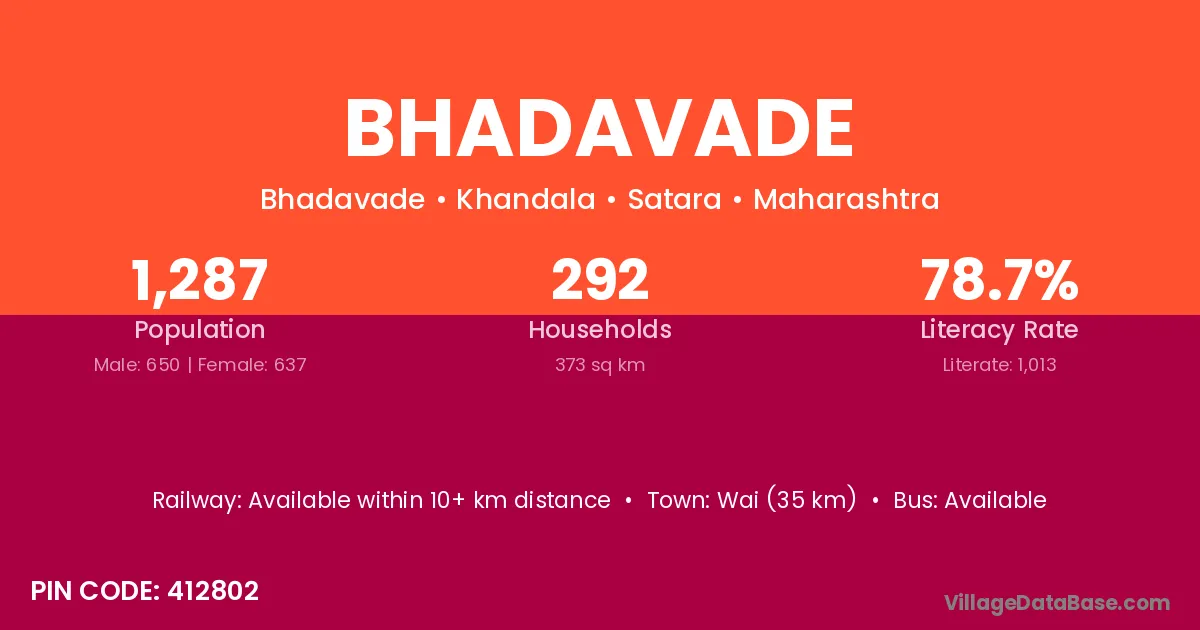 Wai (35 km) is the nearest town to Bhadavade village for major economic activities and is located approximately 35 km away.