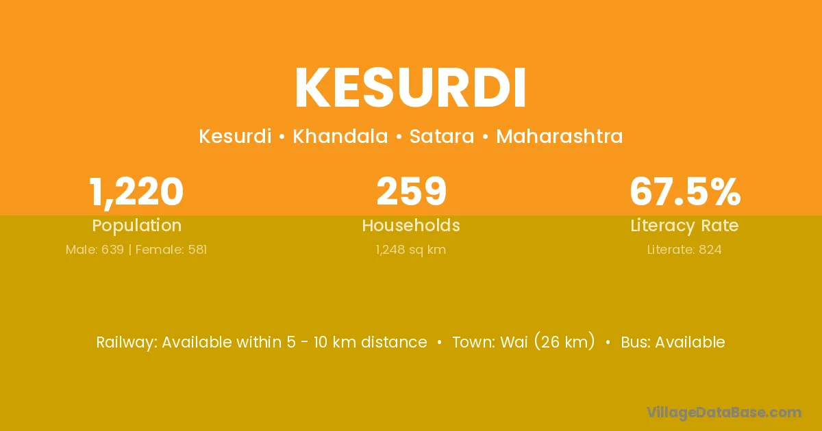 Wai (26 km) is the nearest town to Kesurdi village for major economic activities and is located approximately 26 km away.