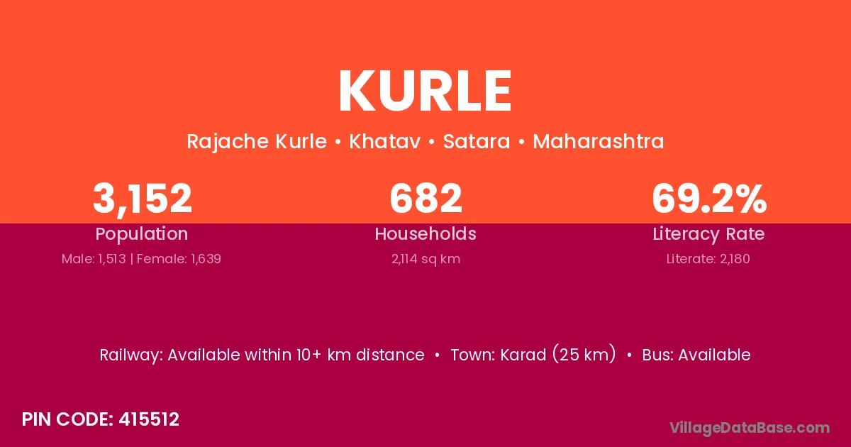 Karad (25 km) is the nearest town to Kurle village for major economic activities and is located approximately 25 km away.