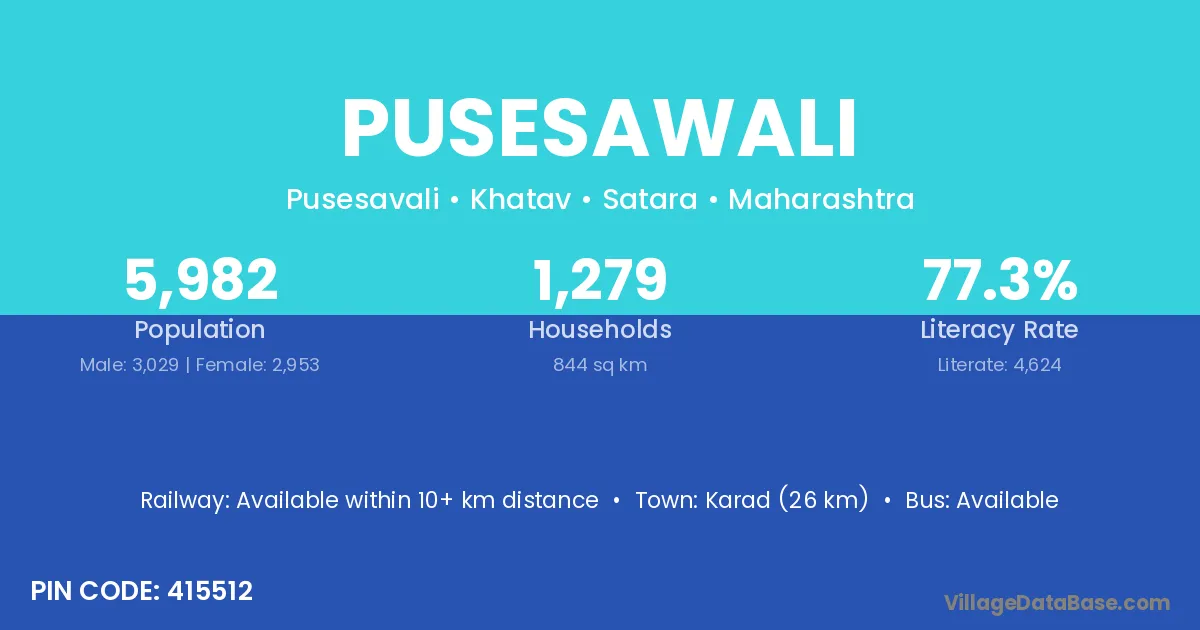 Karad (26 km) is the nearest town to Pusesawali village for major economic activities and is located approximately 26 km away.