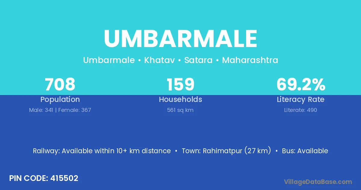 Rahimatpur (27 km) is the nearest town to Umbarmale village for major economic activities and is located approximately 27 km away.