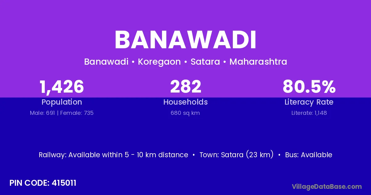 Satara (23 km) is the nearest town to Banawadi village for major economic activities and is located approximately 23 km away.