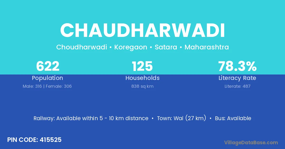 Chaudharwadi village has a total population of 622 people, of which 316 are males and 306 are females.