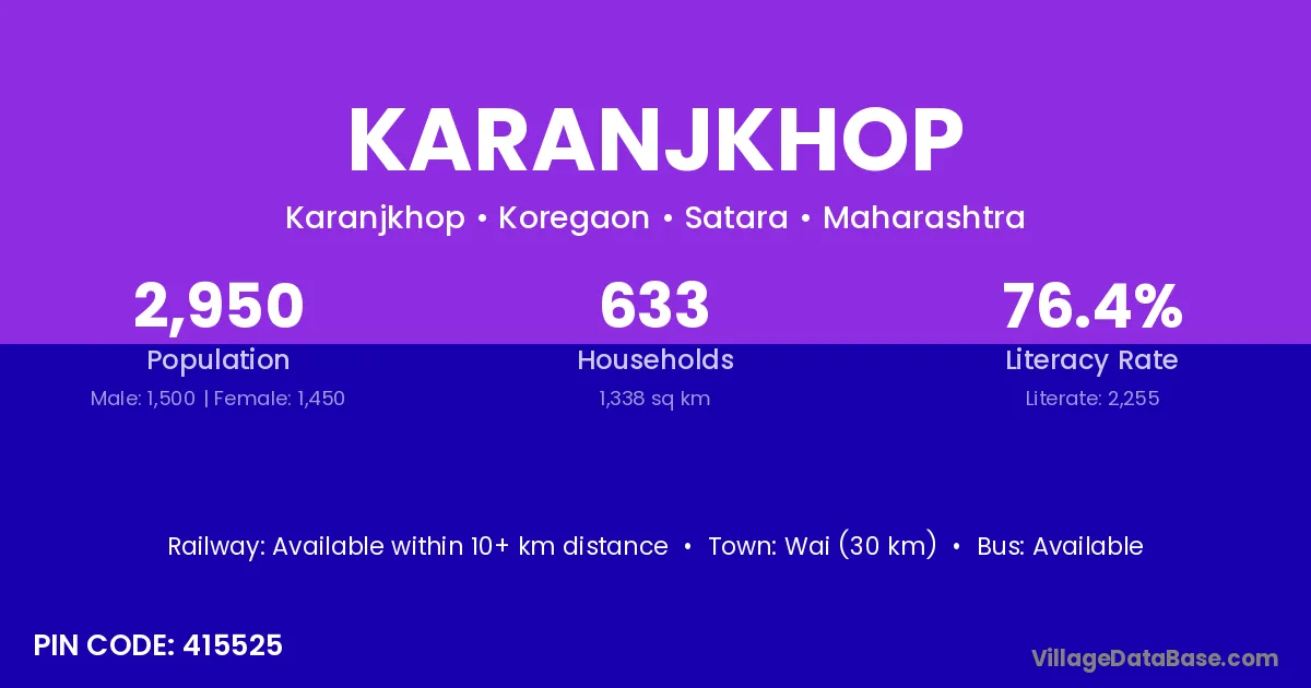 Wai (30 km) is the nearest town to Karanjkhop village for major economic activities and is located approximately 30 km away.