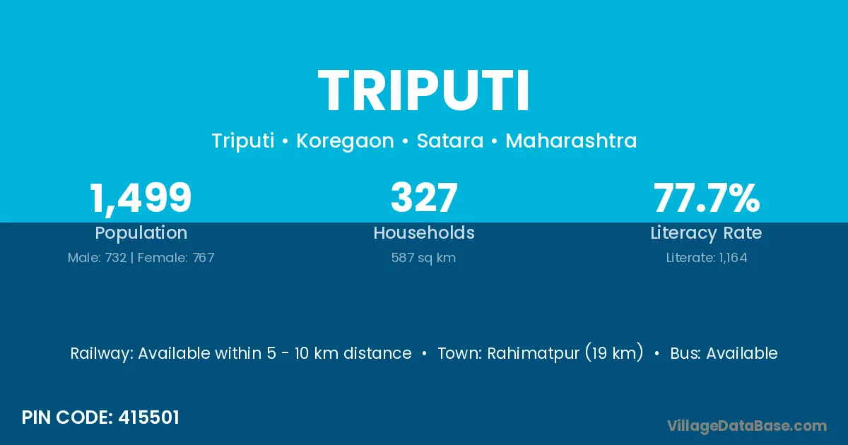 Triputi village has a total population of 1,499 people, of which 732 are males and 767 are females.