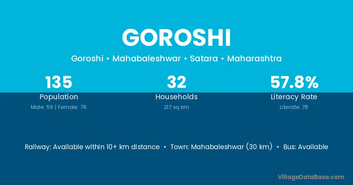 Mahabaleshwar (30 km) is the nearest town to Goroshi village for major economic activities and is located approximately 30 km away.