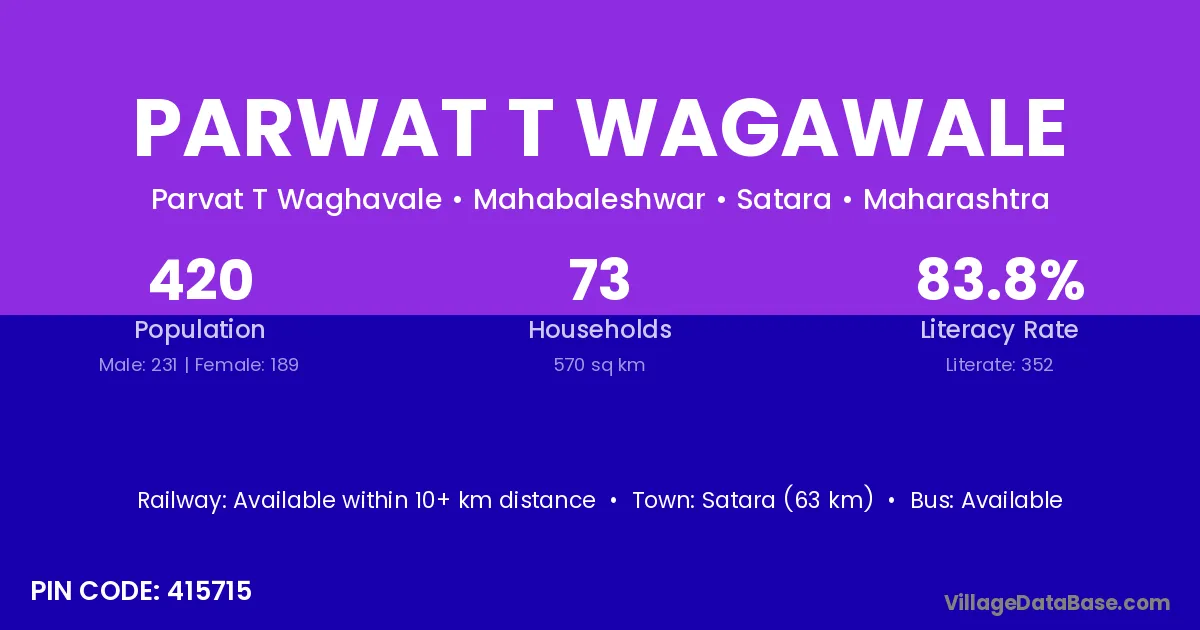 Parwat T Wagawale village has a total population of 420 people, of which 231 are males and 189 are females.