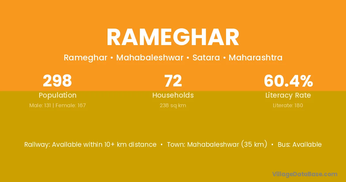 Mahabaleshwar (35 km) is the nearest town to Rameghar village for major economic activities and is located approximately 35 km away.