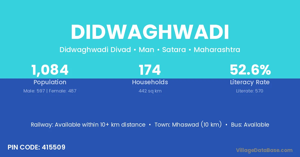Mhaswad (10 km) is the nearest town to Didwaghwadi village for major economic activities and is located approximately 10 km away.