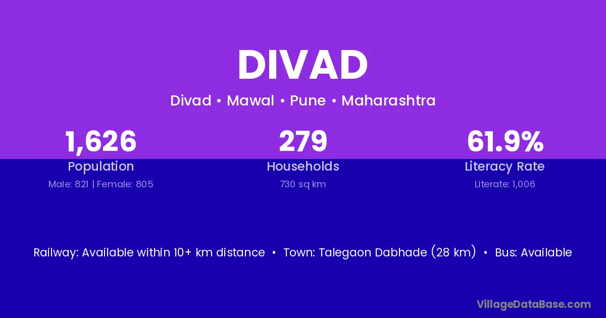 Mhaswad (8 km) is the nearest town to Divad village for major economic activities and is located approximately 8 km away.