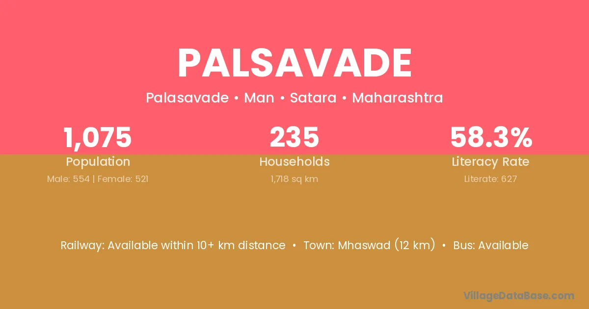 Mhaswad (12 km) is the nearest town to Palsavade village for major economic activities and is located approximately 12 km away.