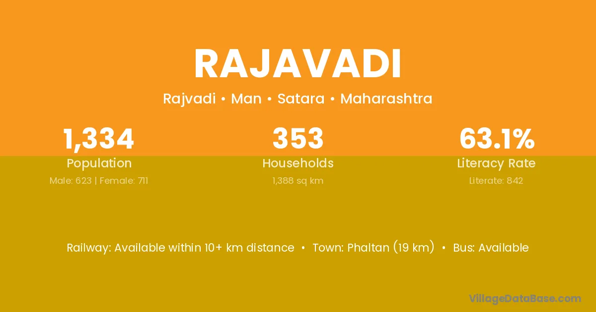 Phaltan (19 km) is the nearest town to Rajavadi village for major economic activities and is located approximately 19 km away.