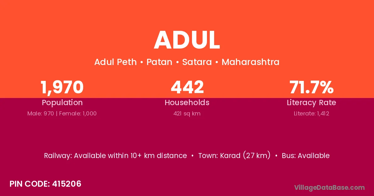 Karad (27 km) is the nearest town to Adul village for major economic activities and is located approximately 27 km away.