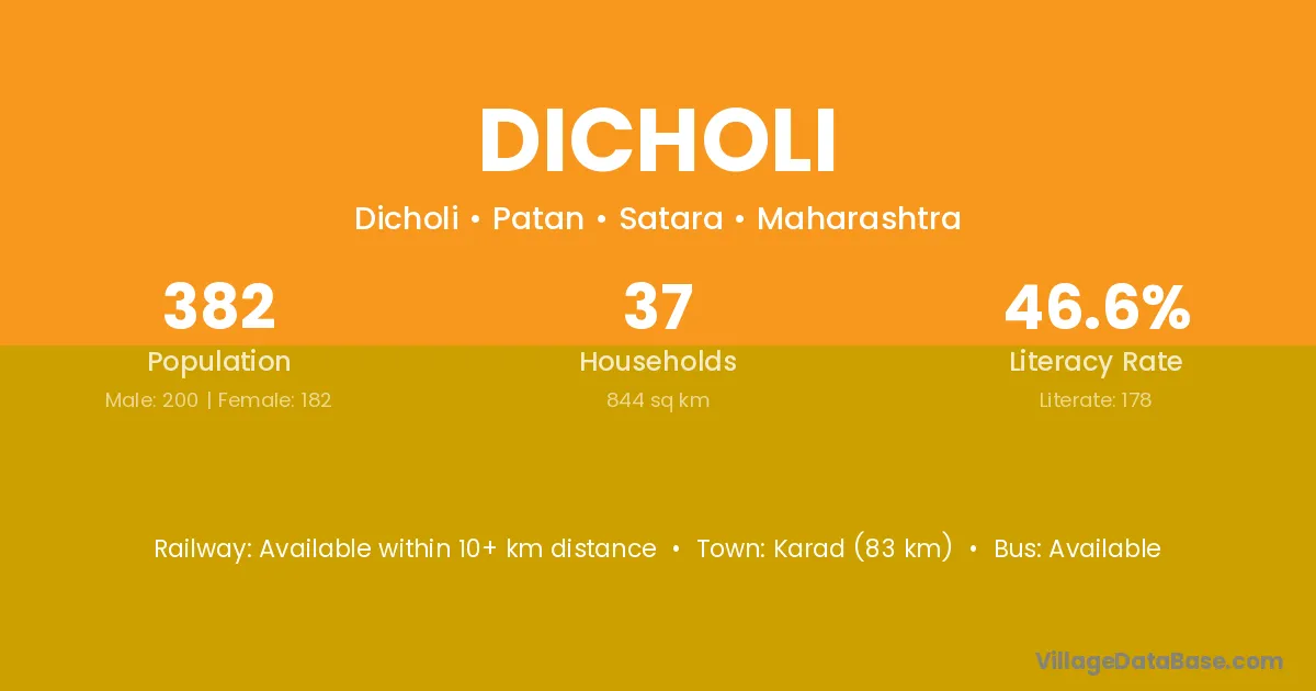 Karad (83 km) is the nearest town to Dicholi village for major economic activities and is located approximately 83 km away.