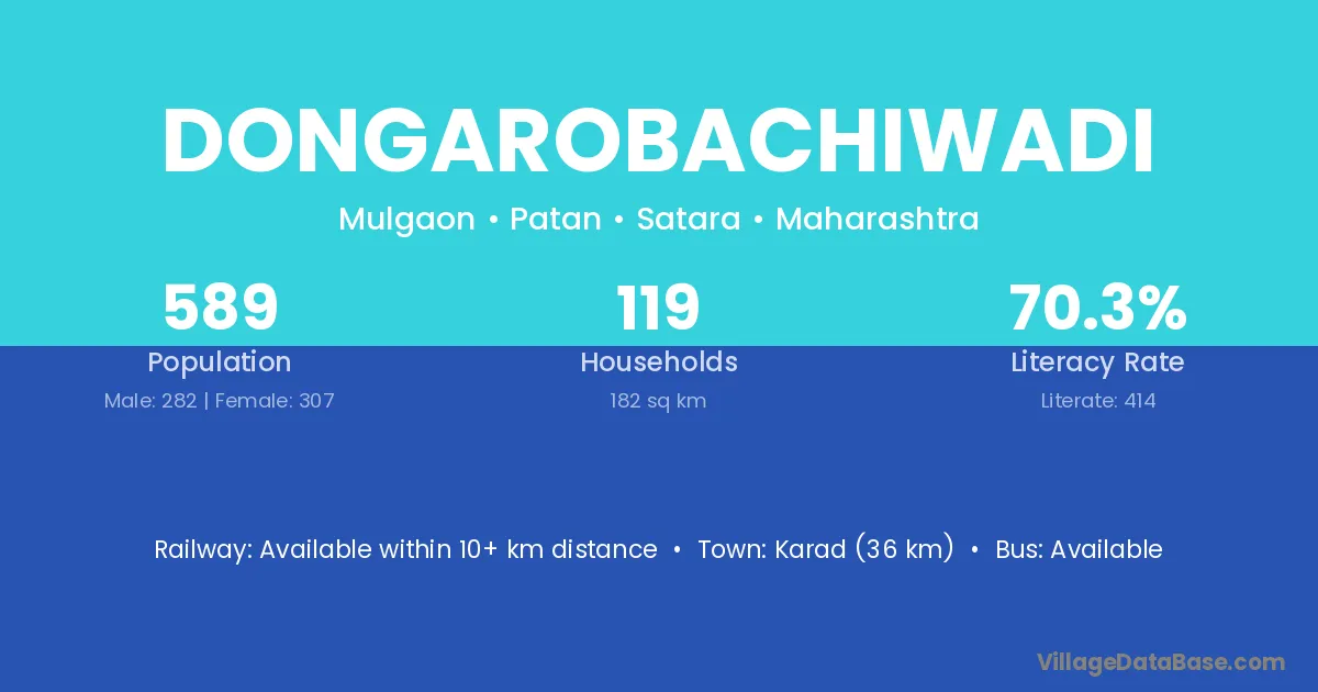 Dongarobachiwadi village has a total population of 589 people, of which 282 are males and 307 are females.
