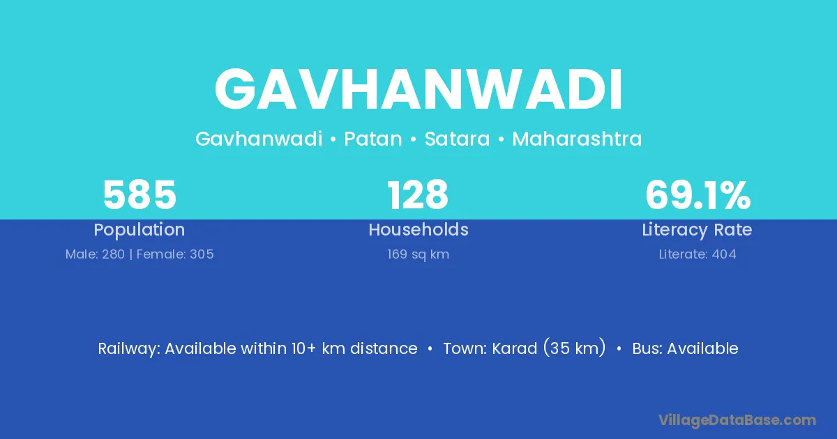 Karad (35 km) is the nearest town to Gavhanwadi village for major economic activities and is located approximately 35 km away.