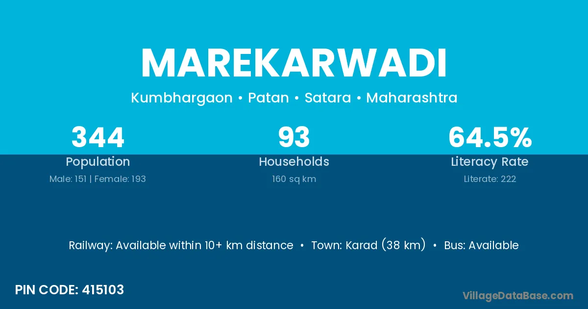 Karad (38 km) is the nearest town to Marekarwadi village for major economic activities and is located approximately 38 km away.