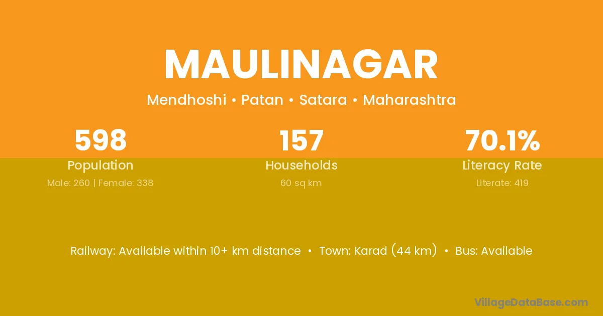 Karad (44 km) is the nearest town to Maulinagar village for major economic activities and is located approximately 44 km away.