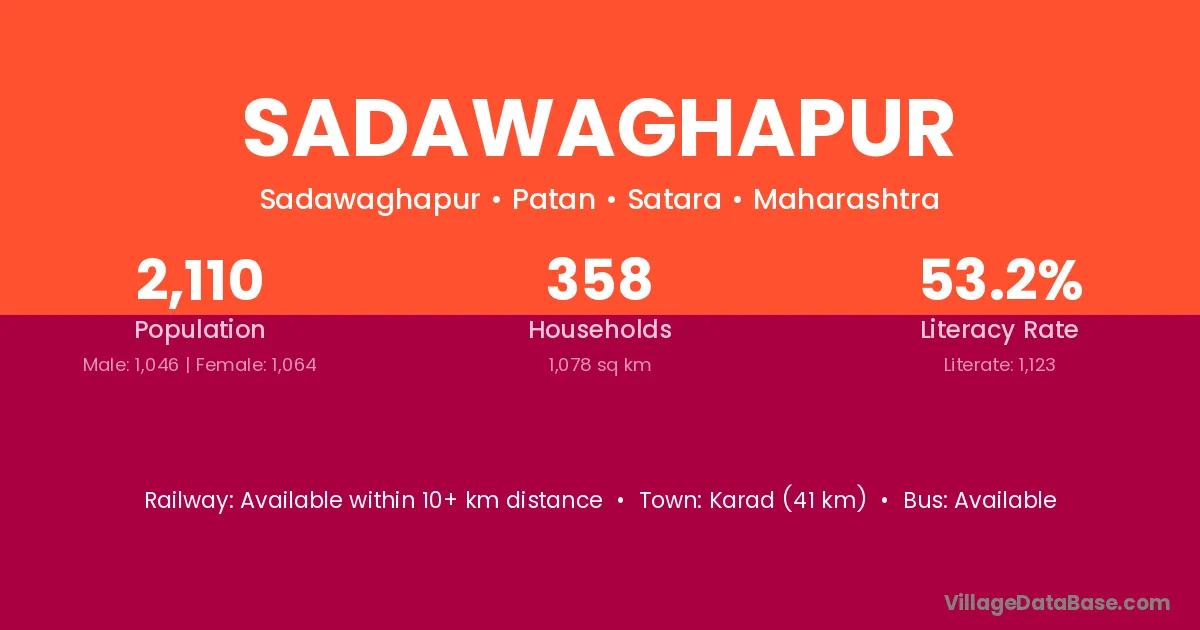 Sadawaghapur village has a total population of 2,110 people, of which 1,046 are males and 1,064 are females.