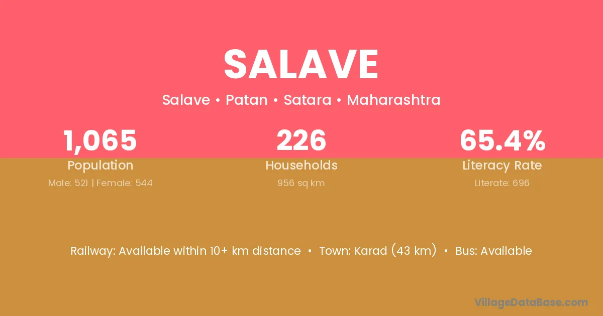 Karad (43 km) is the nearest town to Salave village for major economic activities and is located approximately 43 km away.