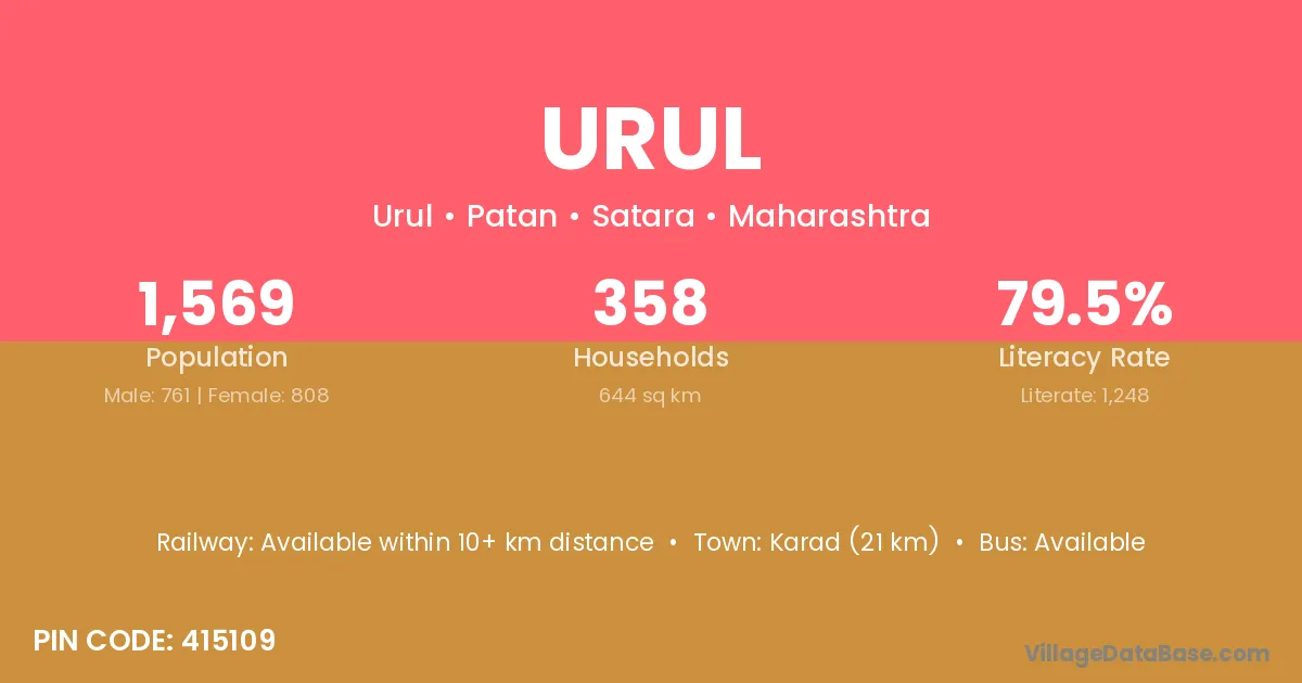Karad (21 km) is the nearest town to Urul village for major economic activities and is located approximately 21 km away.