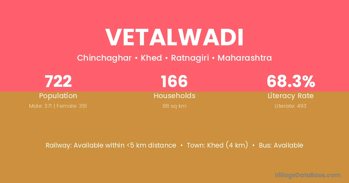 Karad (25 km) is the nearest town to Vetalwadi village for major economic activities and is located approximately 25 km away.