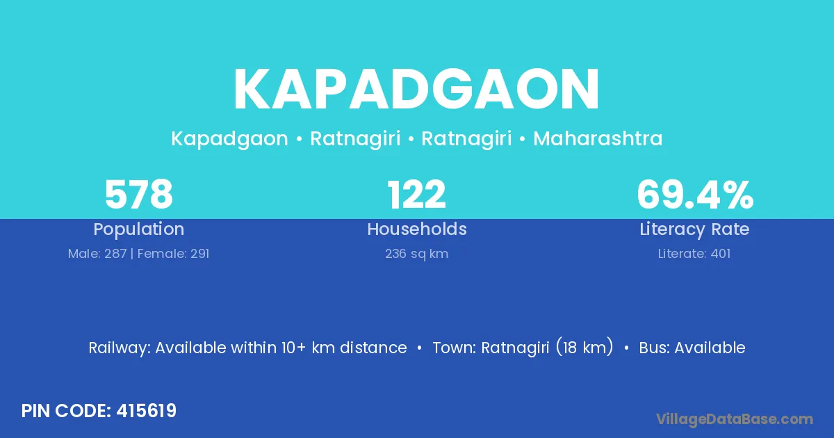 Phaltan (22 km) is the nearest town to Kapadgaon village for major economic activities and is located approximately 22 km away.
