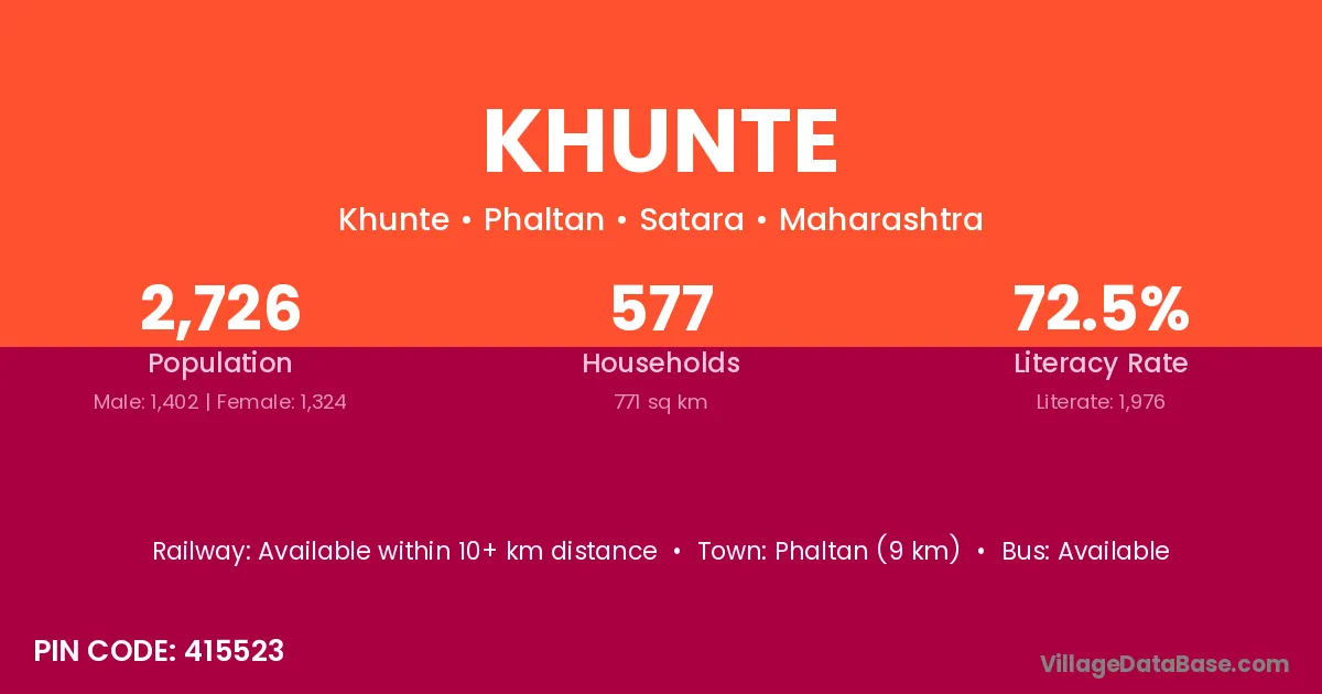 Phaltan (9 km) is the nearest town to Khunte village for major economic activities and is located approximately 9 km away.