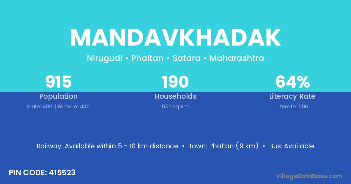 Phaltan (9 km) is the nearest town to Mandavkhadak village for major economic activities and is located approximately 9 km away.