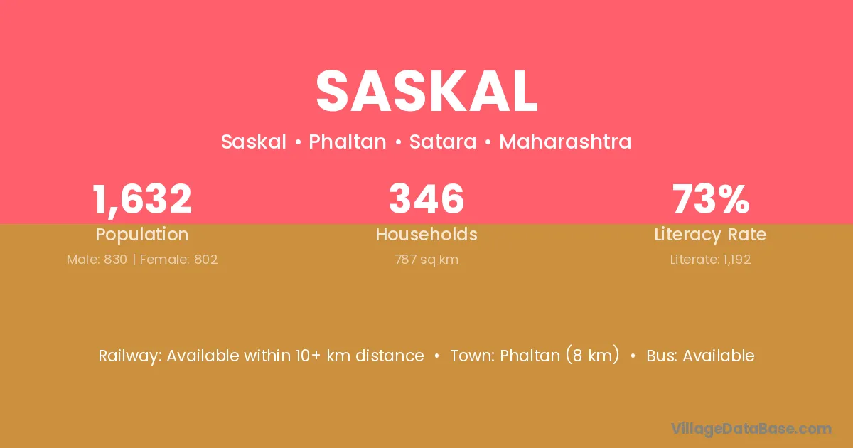 Phaltan (8 km) is the nearest town to Saskal village for major economic activities and is located approximately 8 km away.