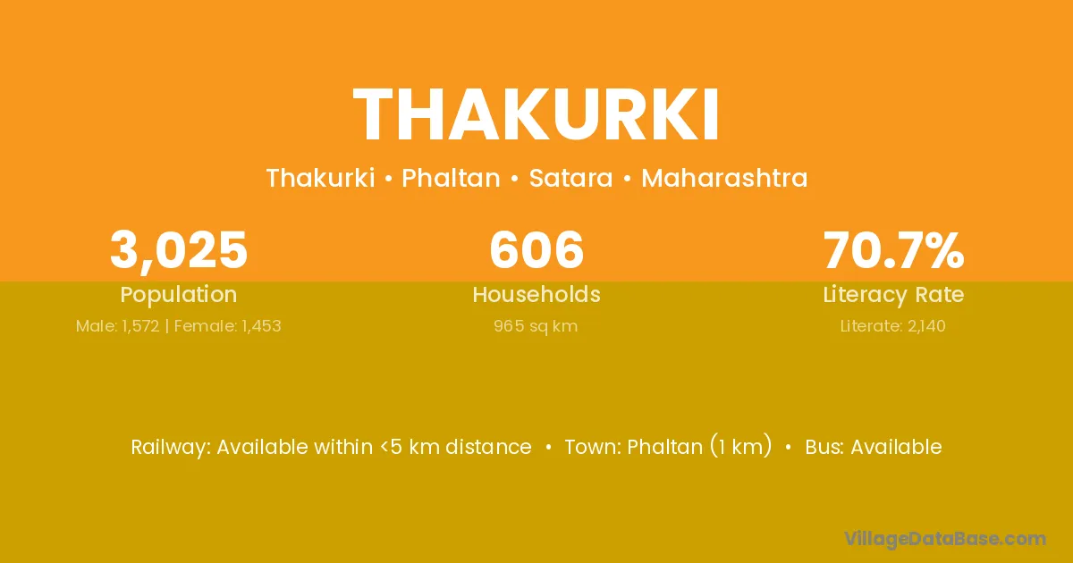 Phaltan (1 km) is the nearest town to Thakurki village for major economic activities and is located approximately 1 km away.