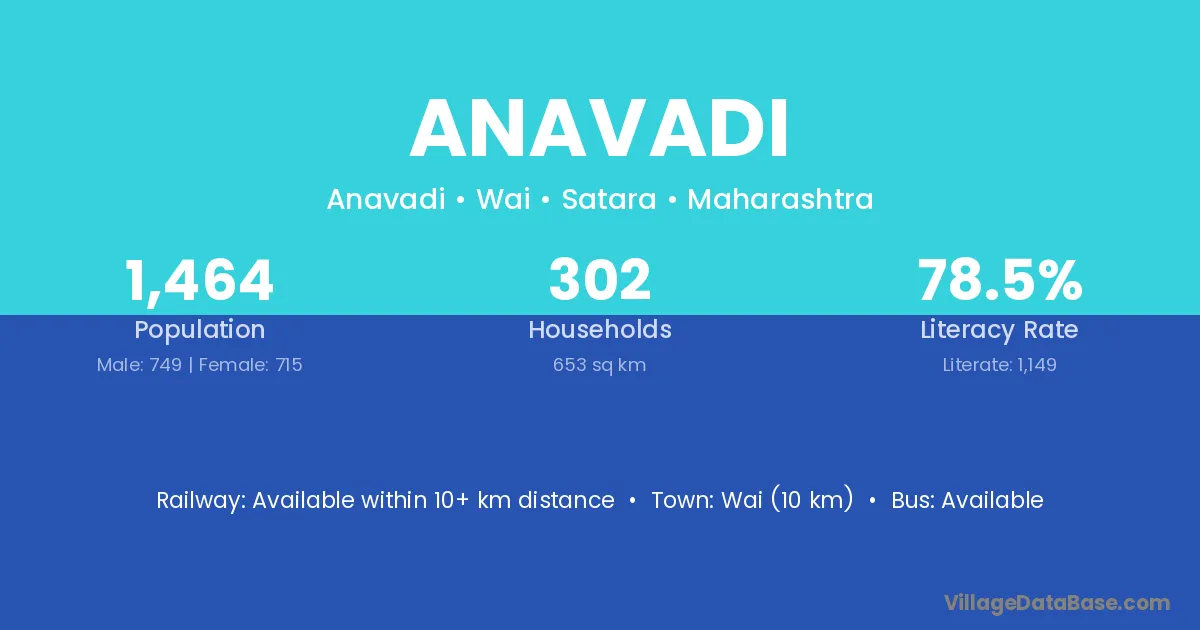 Wai (10 km) is the nearest town to Anavadi village for major economic activities and is located approximately 10 km away.