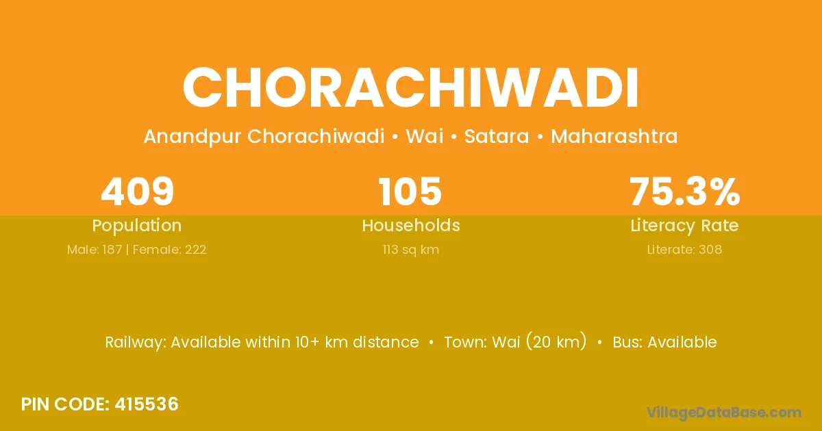 Wai (20 km) is the nearest town to Chorachiwadi village for major economic activities and is located approximately 20 km away.