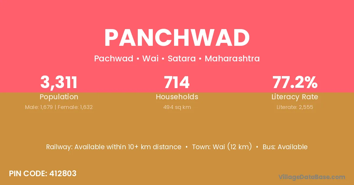 Wai (12 km) is the nearest town to Panchwad village for major economic activities and is located approximately 12 km away.