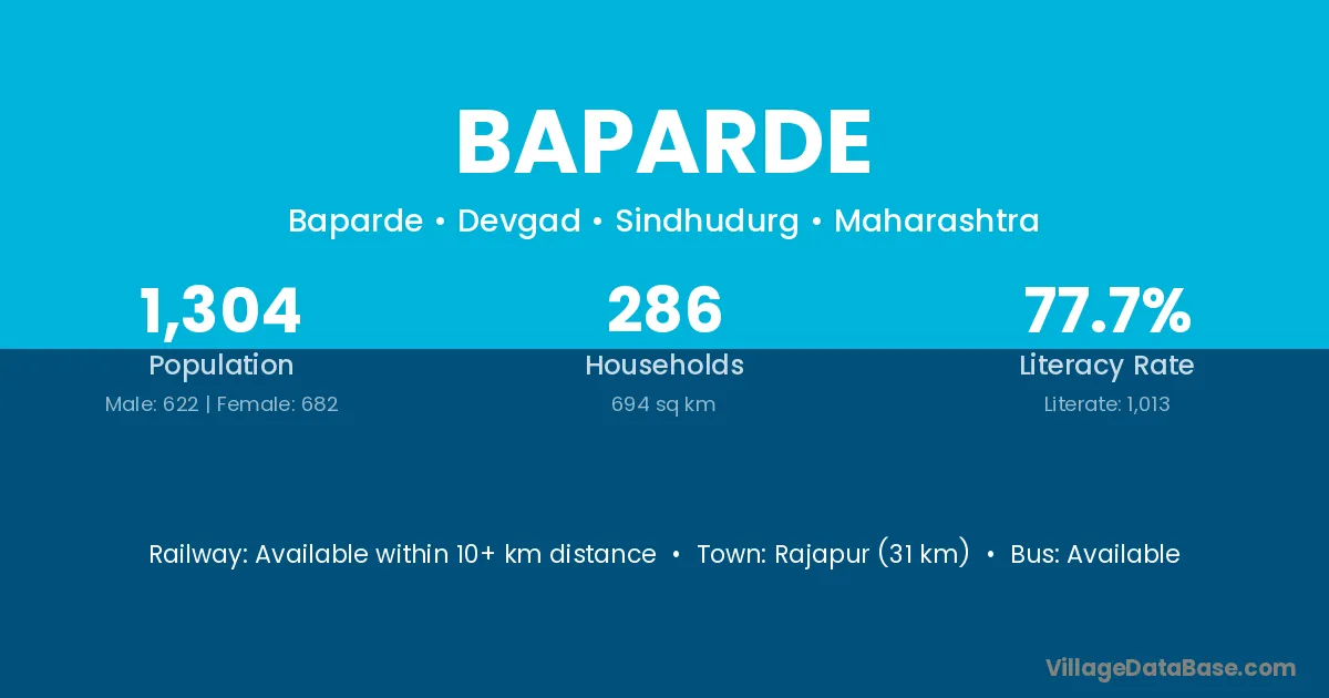 Rajapur (31 km) is the nearest town to Baparde village for major economic activities and is located approximately 31 km away.