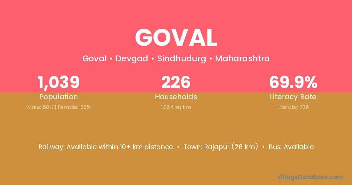 Rajapur (26 km) is the nearest town to Goval village for major economic activities and is located approximately 26 km away.