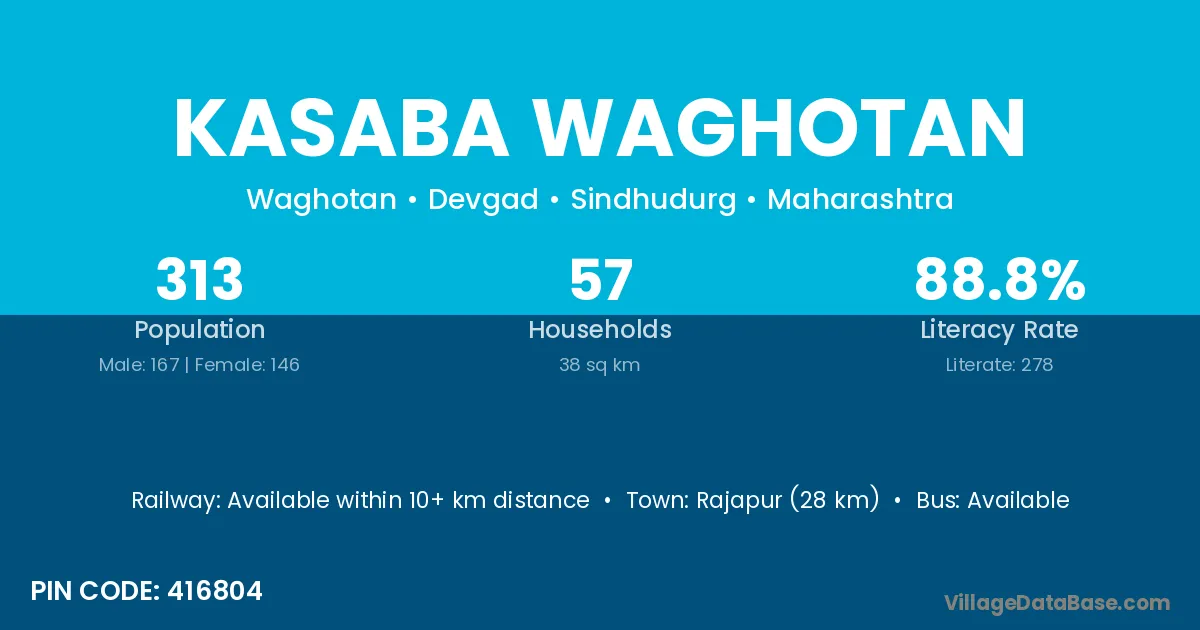 Rajapur (28 km) is the nearest town to Kasaba Waghotan village for major economic activities and is located approximately 28 km away.